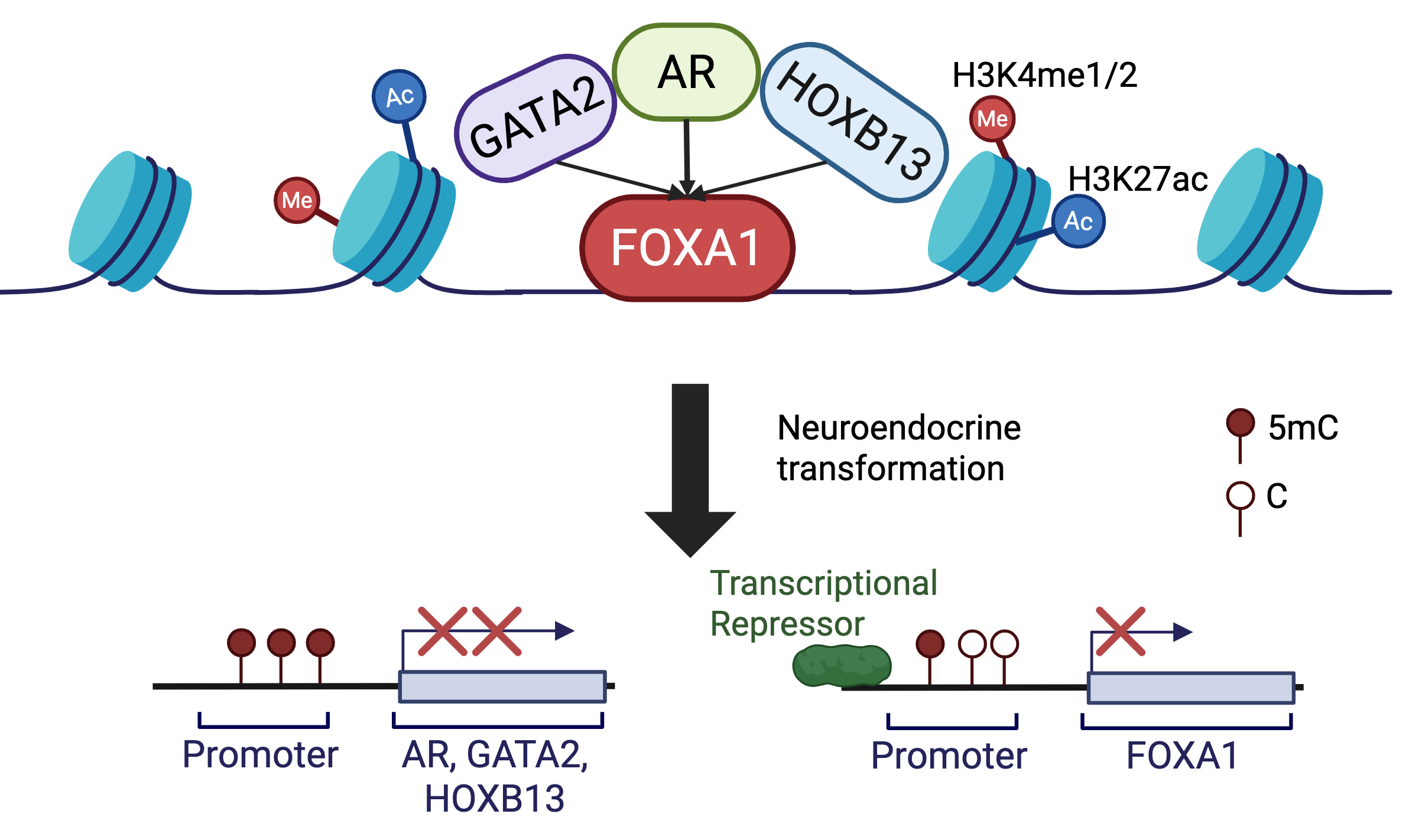 KeywordsNeuroendocrine prostate cancer, HOXB13, FOXA1, GATA2, DNA methylation, ChIP-seq, pioneer factor, cistrome reprogramming