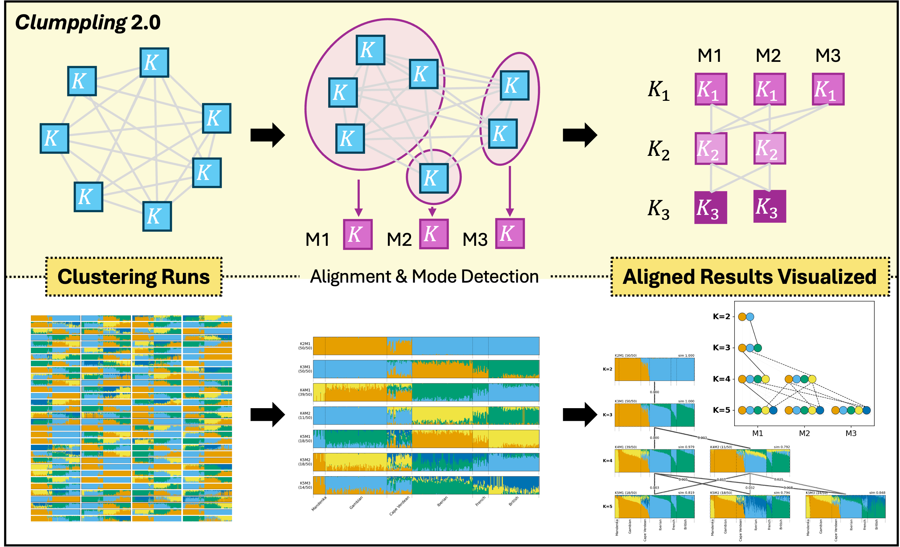 Cite this article: Liu X, Rosenberg NA, Ramachandran S. Clumppling 2.0: A Clustering Alignment Program for Population Structure Analyses. Hum Popul Genet Genom. 2026;6(2):0004. https://doi.org/10.47248/hpgg2606020004