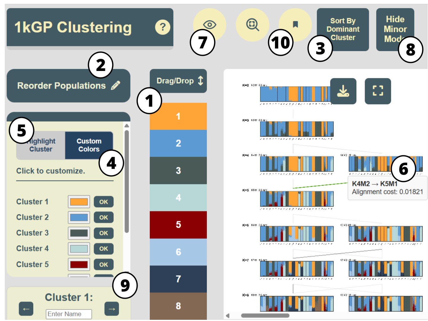 Keywordspopulation structure, clustering, clustering alignment, visualization, interactive
