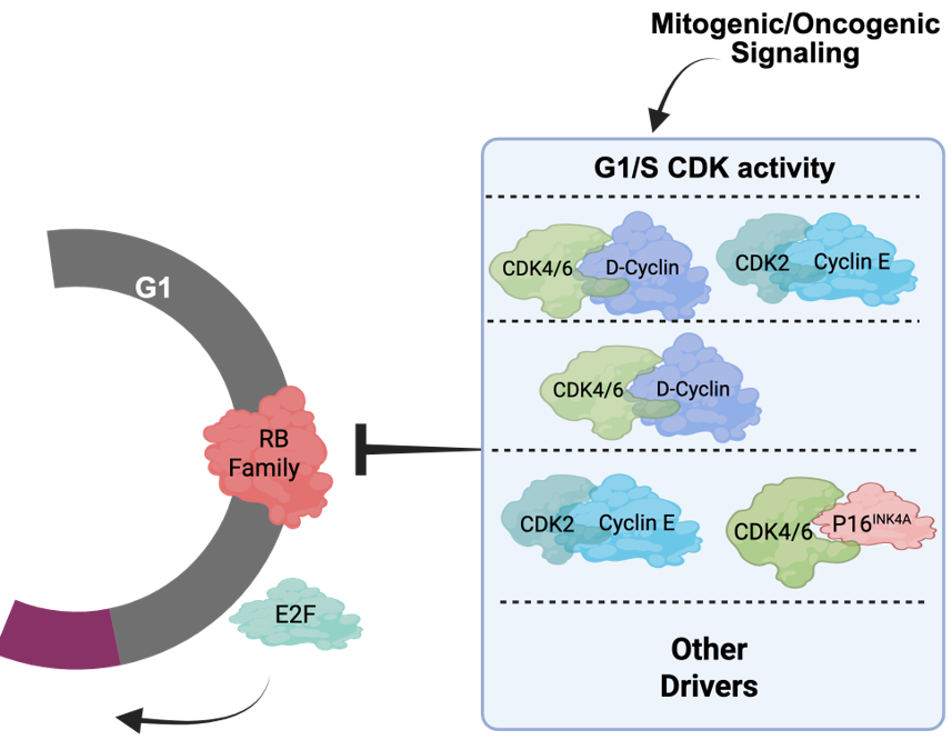 Progression through the mammalian cell cycle is a highly regulated process to maintain tissue homeostasis. The key regulators of cell cycle transitions are cyclin-dependent kinase (CDK)/Cyclin complexes that phosphorylate substrates such as the RB tumor suppressor to facilitate cellular division. The regulation of G1/S is of particular significance in cancer and is affected by numerous tumor suppressors and oncogenes. Historically, the cell cycle was viewed as a rigidly regulated process, but recent evidence has revealed significant flexibility and differential CDK/Cyclin dependencies across tumor types. These heterogeneous features of cell cycle control have implications for the etiology of different tumor types as well as the response to multiple therapeutic modalities. Most notably, adaptive responses in cell cycle regulatory circuits can contribute to acquired resistance in a variety of contexts, underscoring the importance for tumor biology and disease treatment.