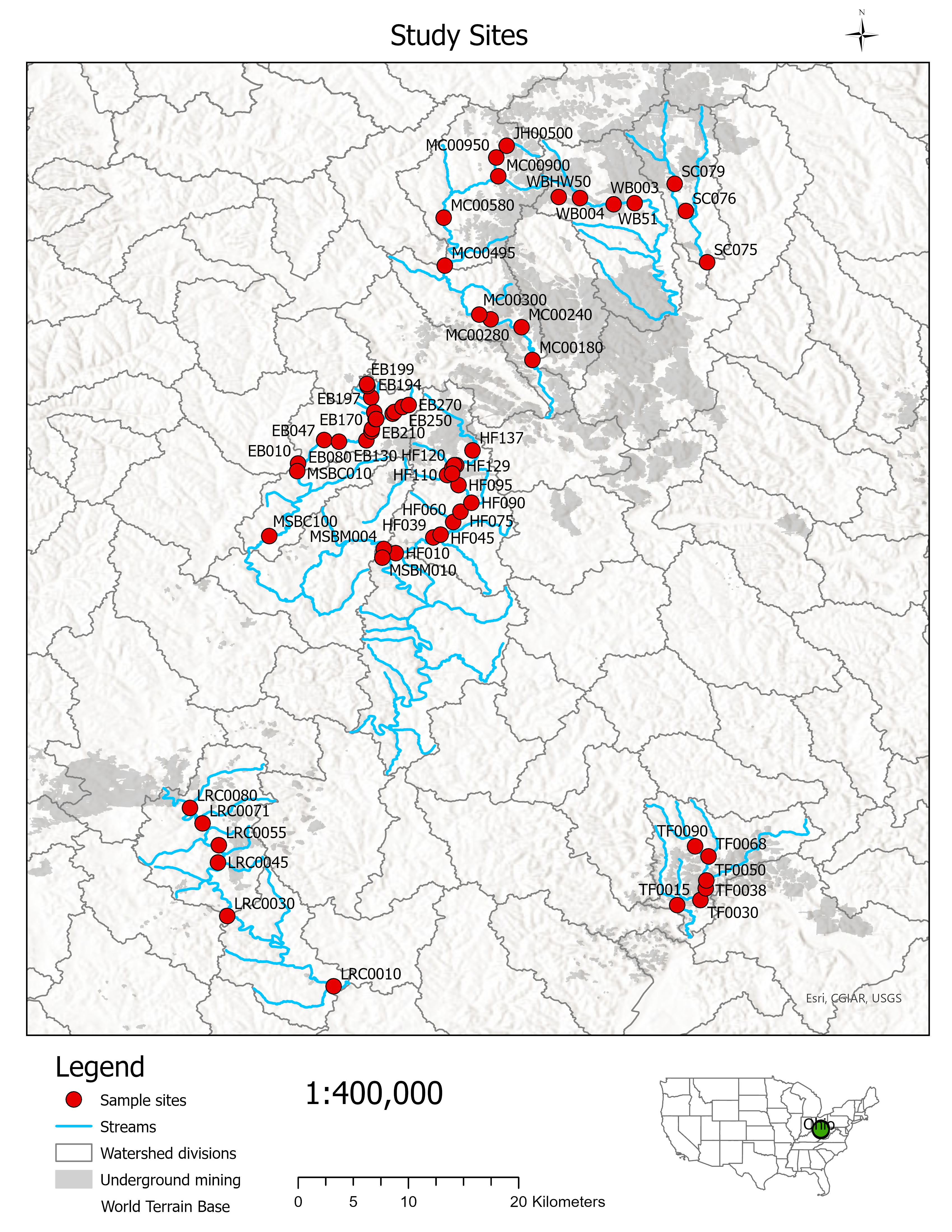 The authors acknowledge the support of Raccoon Creek Partnership and Rural Action for site access and environmental staff of the Ohio University’s Voinovich School of Leadership and Public Service for logistics.