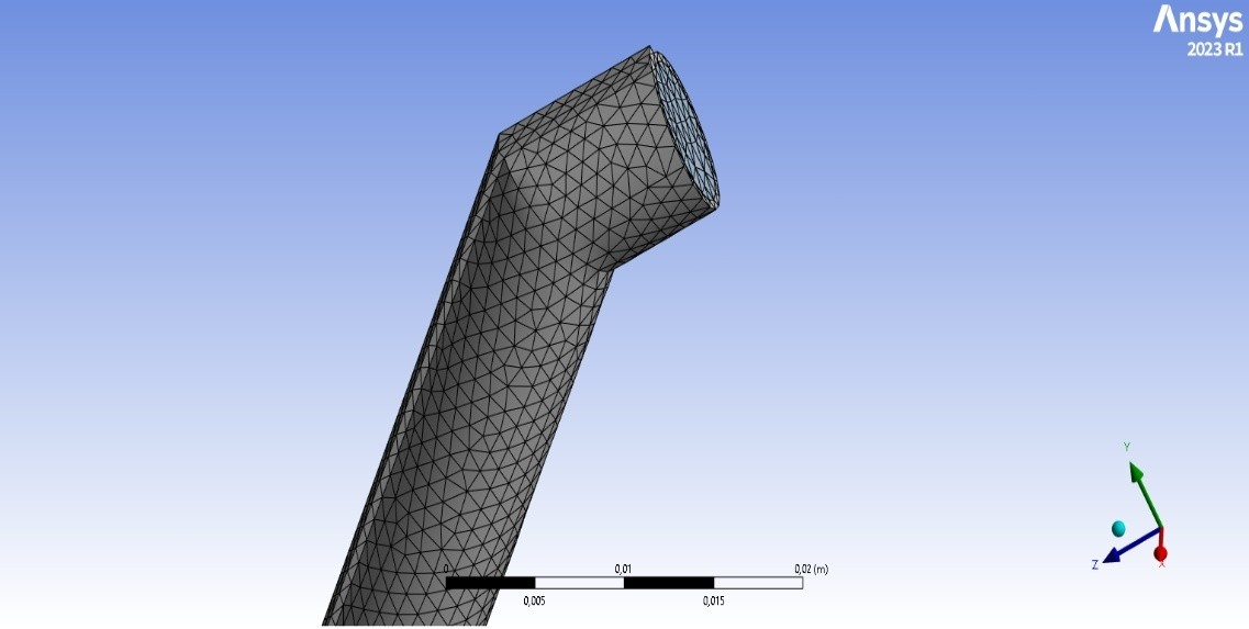 The geometries were imported into ANSYS Meshing for grid generation. A tetrahedral mesh was used, with inflation layers added near the wall regions to accurately resolve velocity and temperature gradients. Mesh independence studies were carried out for each configuration, confirming numerical stability with an average element size of 5 mm. The meshing approach and structure for the riser are illustrated in Figure 3.